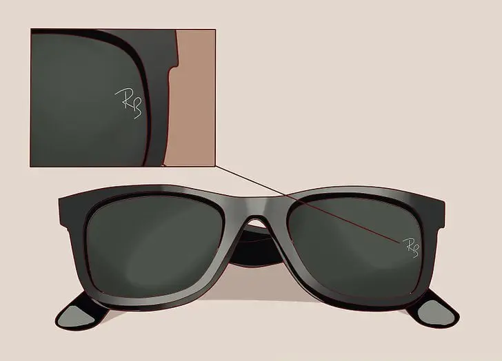 - Sur le verre gauche, recherchez l'inscription "Ray-Ban" en blanc, suivie d'un "P" si les verres sont polarisés. Les lettres "R" et "B" doivent être en majuscule.